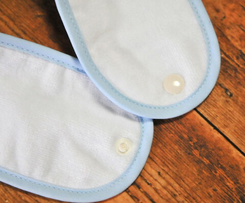 )今治タオルの生地を使ったビブ(スタイ・よだれかけ)ができました!吸水性はもちろん、肌触りもなめらかなベルベット調のシャーリングタオル地で赤ちゃんの肌にも優しい綿100%金属に弱い肌に配慮したプラスチックのスナップボタンと、ゆったりサイズで使い勝手も上質です。